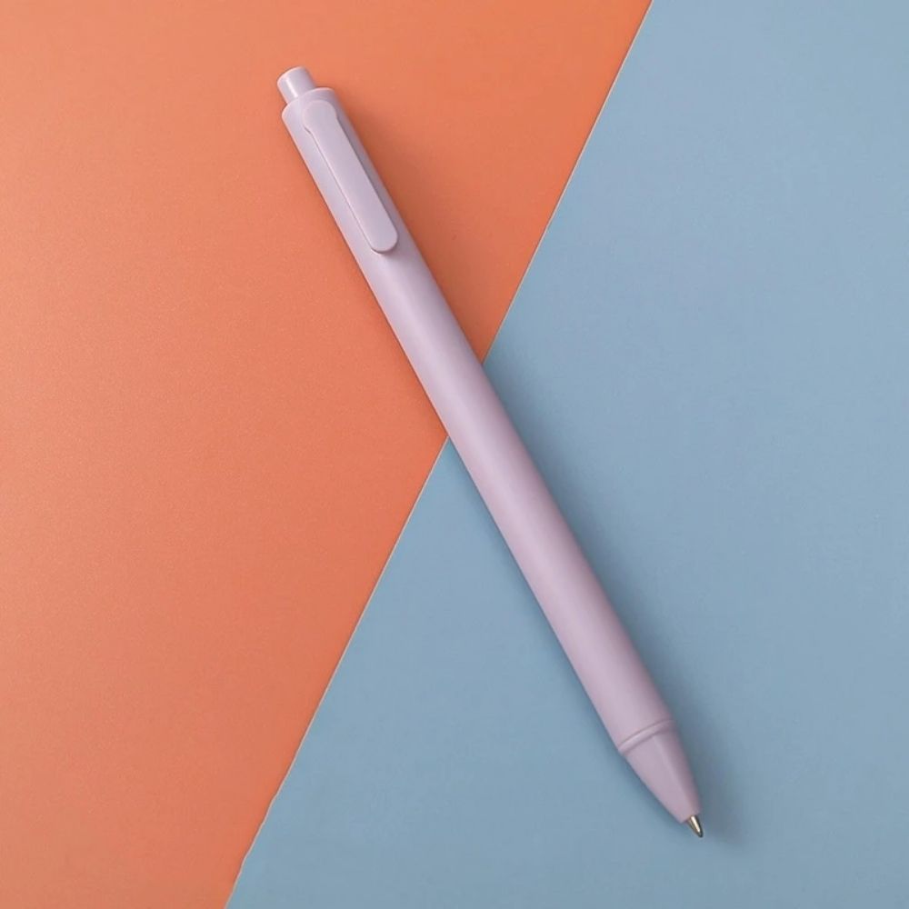 This Macaron Press Gel Pen in purple combines functionality with style. Its lightweight design, press mechanism, and smooth black ink make it perfect for students and professionals. A chic addition to your stationery collection.